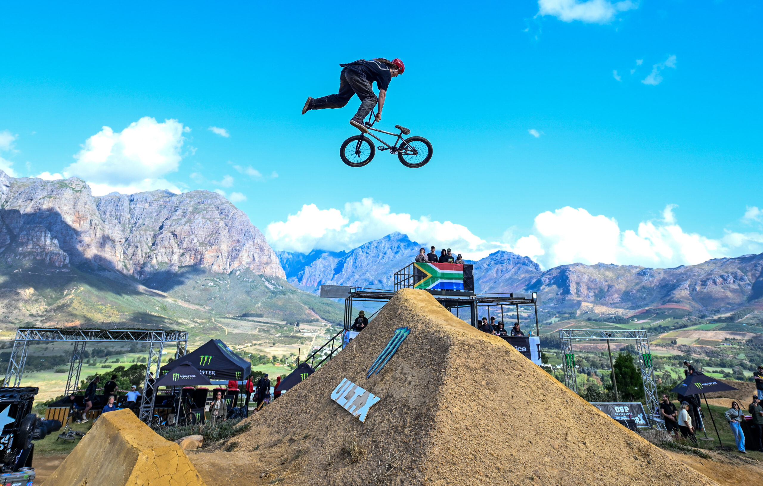 What makes Darkfest unique is the canvas provided by the South African landscape. The legendary jumps—including the newly debuted “Rocket” and the “Falcon Heavy”—were brought to life by C-dog and the local Trails Crew. Working tirelessly in the grueling South African sun, the crew hand-packed every lip and landing, transforming Stellenbosch dirt into a world-class architectural marvel that forced international riders to push their limits.